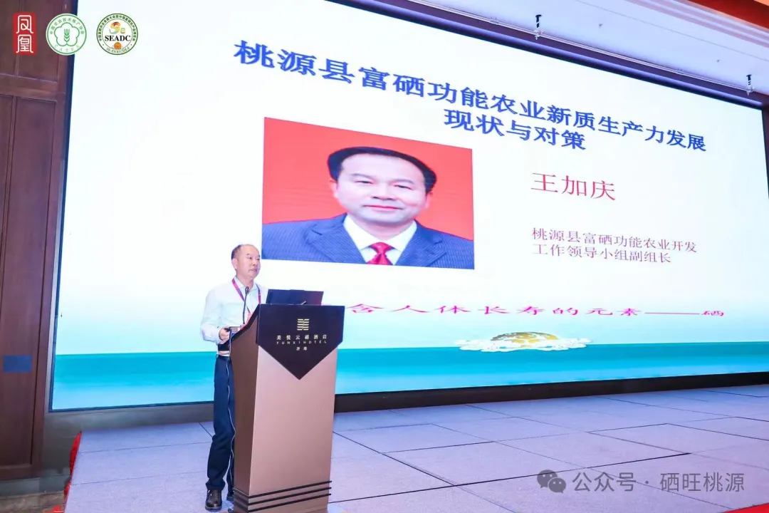 本次大會(huì)由中國農(nóng)業(yè)技術(shù)推廣協(xié)會(huì)主辦,原農(nóng)業(yè)部常務(wù)副部長、國務(wù)院參事室特約研究員尹成杰、中國農(nóng)業(yè)技術(shù)推廣協(xié)會(huì)會(huì)長陳生斗、山東省政府原副秘書長、省富硒農(nóng)產(chǎn)品協(xié)會(huì)顧問高洪波分別致辭,武漢輕工大學(xué)黨委副書記(正校級)、國硒中心主任程水源、世界施瓦茨獎(jiǎng)獲得者、衛(wèi)健委微量元素與地方病重點(diǎn)實(shí)驗(yàn)室主任王治倫等專家學(xué)者進(jìn)行了學(xué)術(shù)報(bào)告,廣西、湖南、恩施、宜春等地區(qū)作了經(jīng)驗(yàn)交流,桃源縣富硒功能農(nóng)業(yè)領(lǐng)導(dǎo)小組副組長王加慶在會(huì)上對桃源縣富硒功能農(nóng)業(yè)新質(zhì)生產(chǎn)力發(fā)展的經(jīng)驗(yàn)和措施作了重點(diǎn)推介。